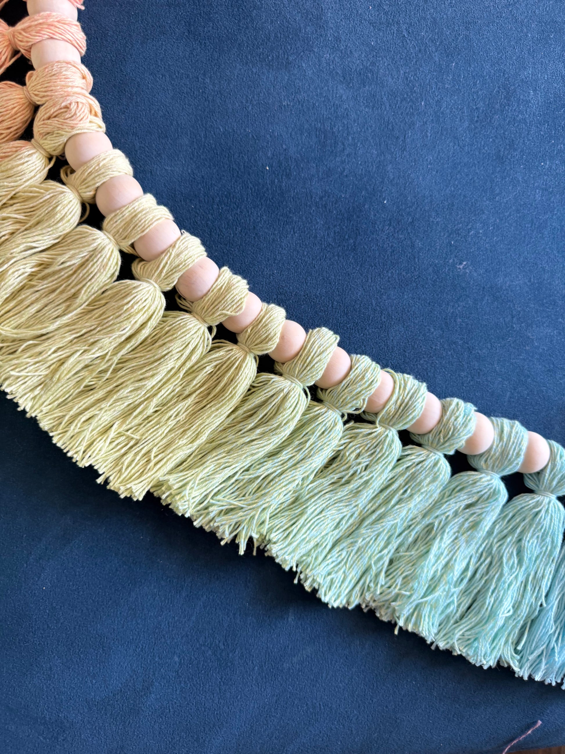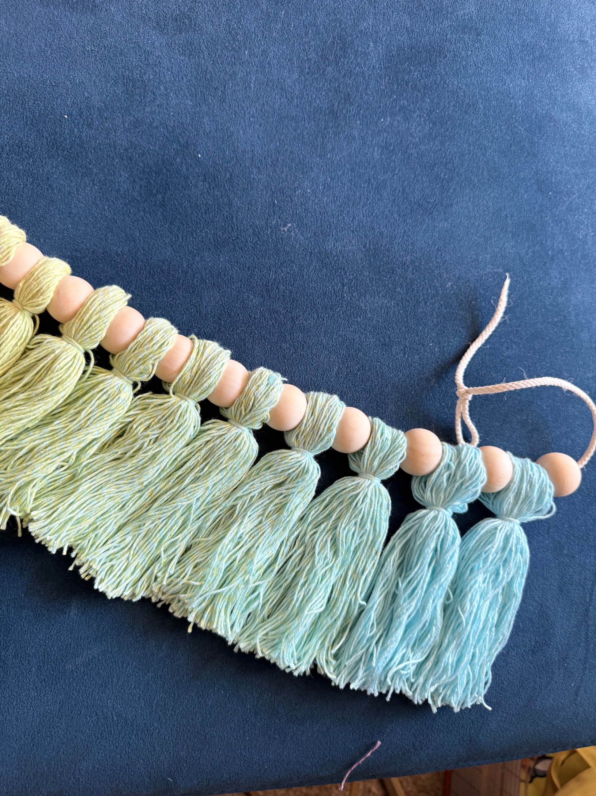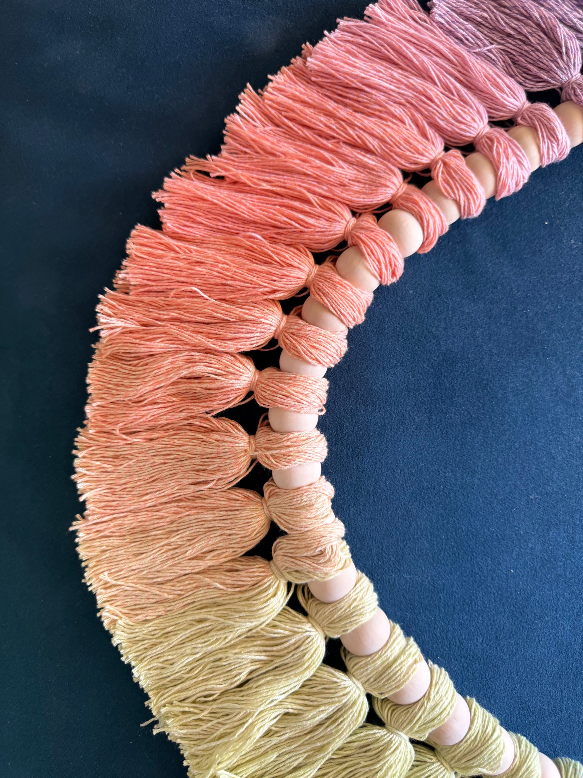 XL garland with soft, ombré rainbow tassels. Garland is about 5ft. long on a cotton twine; twine could be trimmed if needed/wanted.